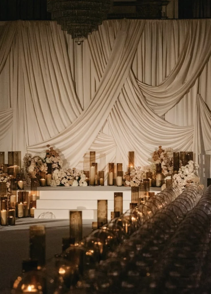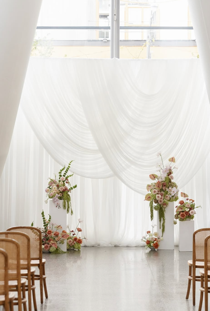 Custom draped fabric backdrops for ceremonies and receptions
